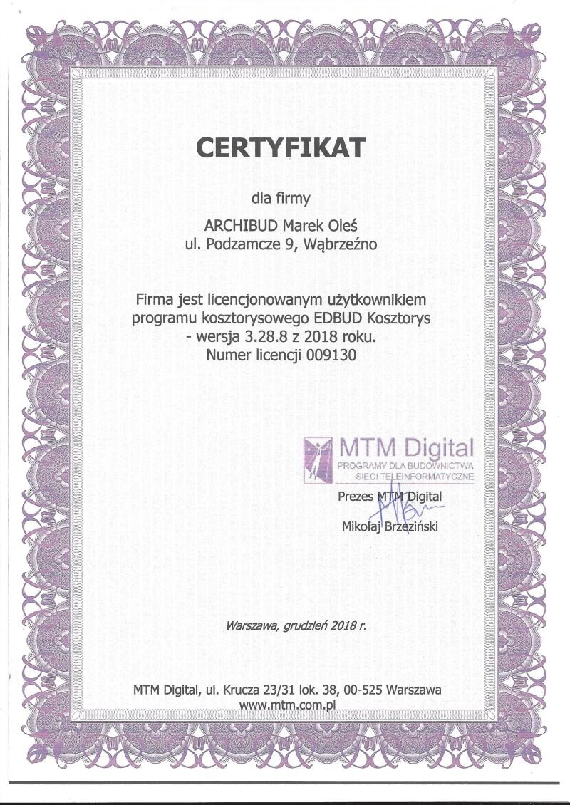 Certyfikat EDBUD Kosztorys 3.28.8