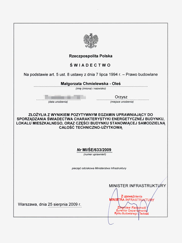 Uprawnienia do wystawiania świadectw energetycznych budynków